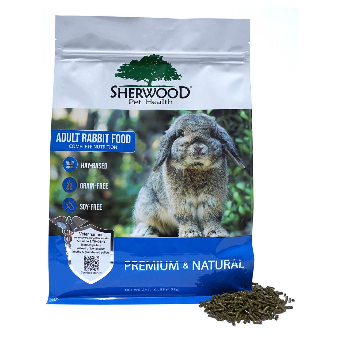 Sherwood's unique formula uses alfalfa (instead of the commonly used soybean meal) because it is a more natural, healthier and balanced source of protein that rabbits are adapted to. It is blended with premium grass hay and fortified with additional nutrients. Veterinarians agree that this diet is superior to the grain/soy based diets on the market today.